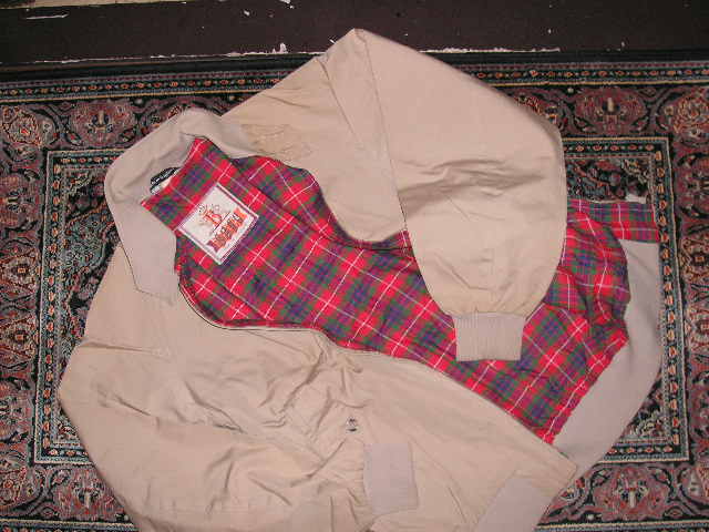 | 「バラクータG9」 1948年、ゴルフのウインドブレーカーとして登場 (G=ゴルフ)(9=9番目) 映画の[華麗な賭け]で、スティーブ.マックイ-ンが紺を着ていましたね。 [VAN]のスイングトップやジヤンパーなど1枚仕立てや、裏地が黒や紺がたくさんで、 バラクータのタータンチエックがカツコよく、欲しくて当時他のメーカーより、すごく高くて値段がもう30年位前になりますが。なぜかタンスの中にしまってありました、体型的に着れませんがお宝ですね。BDシヤツに綿パンでスニーカーが白のトップサイダーで決まり・・・!! |